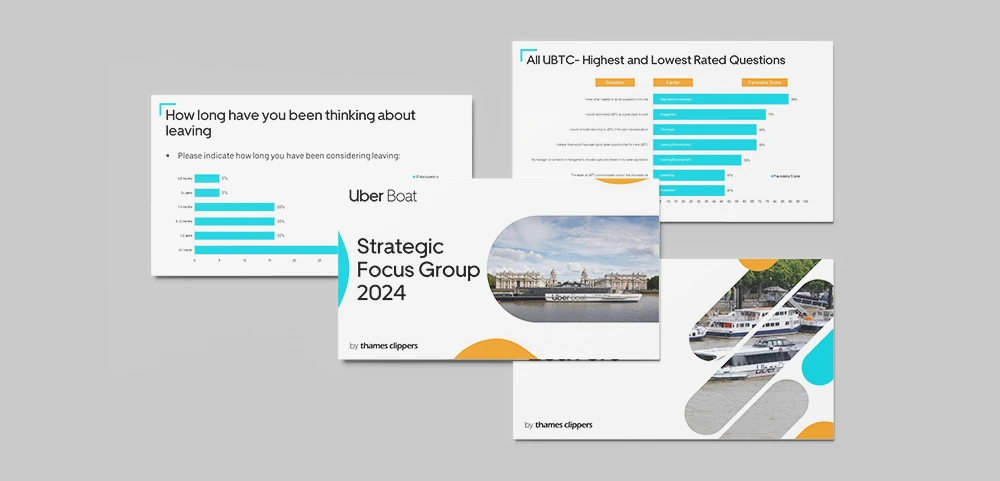 The redesigned presentation immediately elevated Thames Clippers’ internal communication standards and significantly improved leadership engagement with critical HR insights. The professional design quality enhanced credibility while improved data visualization enabled more informed strategic planning.